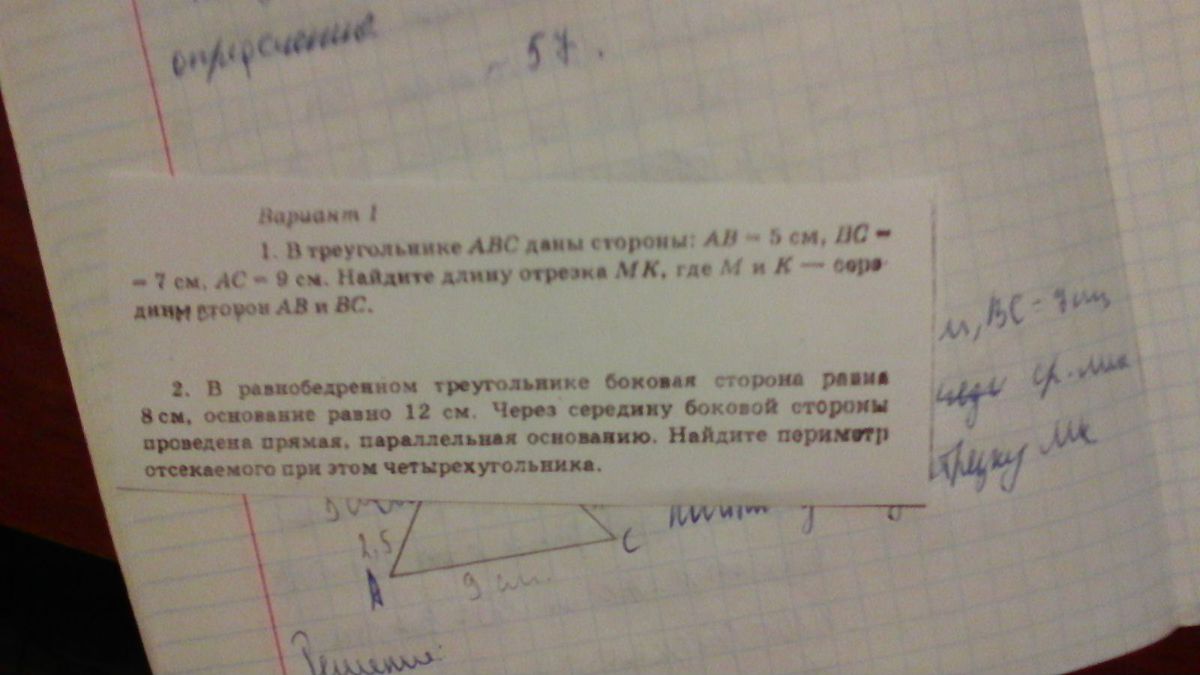 надеюсь проходили что такое средняя линия треугольника, если нет - могу по другому решить.