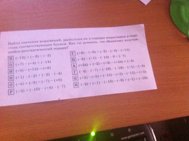 найдите значения выражений расположи их в порядке возрастания и сопоставь, сооттветствующим буквам.Как ты думаешь, что обозначает получившийся математический термин?