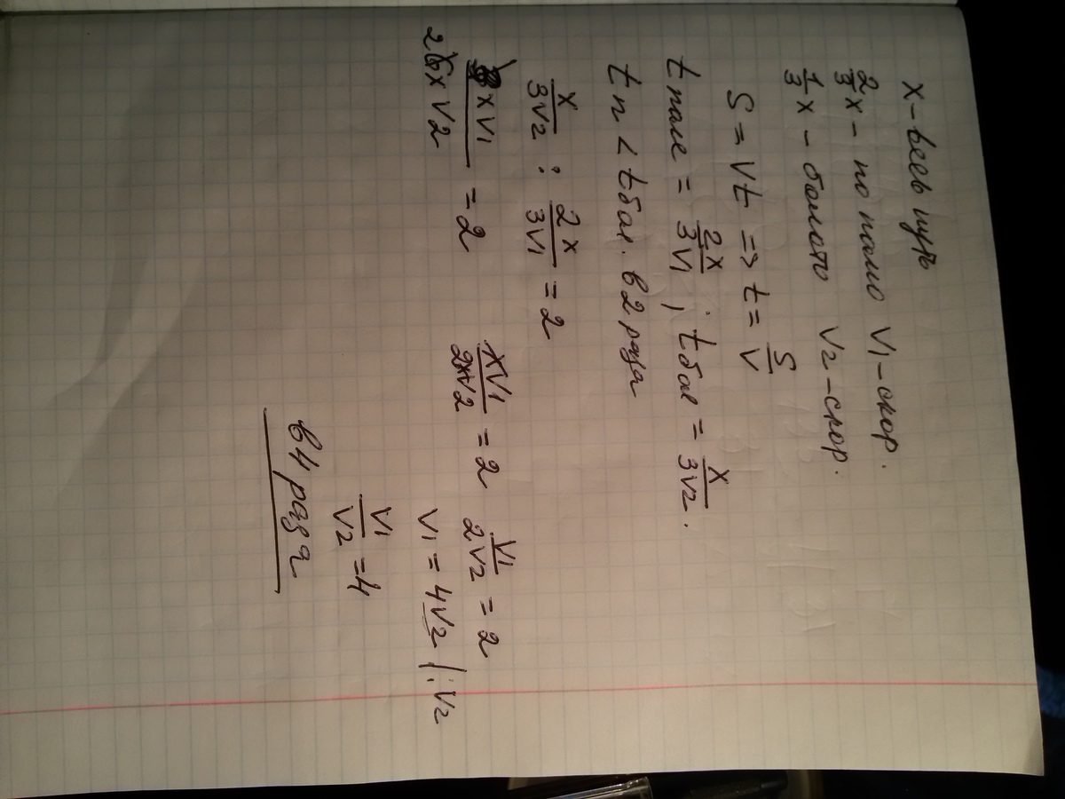 Туристы шли по маршруту, проходящему на 2/3 по полю и на 1/3 по болоту. Они затратили. Они затратили на движение по полю вдвое меньше времени, чем движение по болоту. Во сколько раз скорость движения по болоту меньше скорости движения по полю?