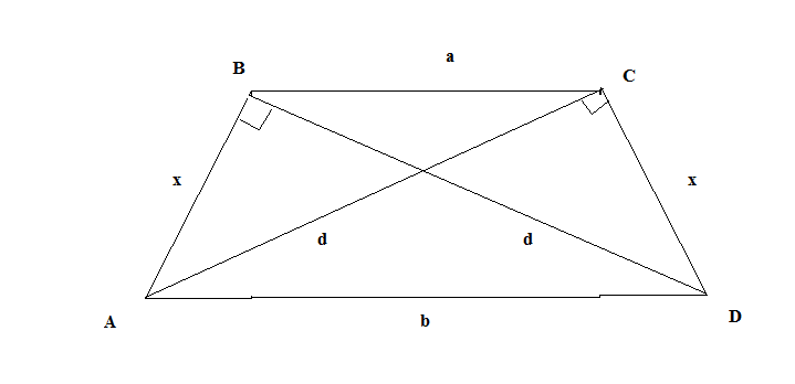 итак, для решения задачи, воспользуемся формулой нахождения диагоналей трапеции через основания: