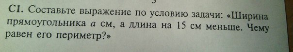 Ширина прямоугольника 20 см,а длина на 15 см меньше.Чему равен периметр?