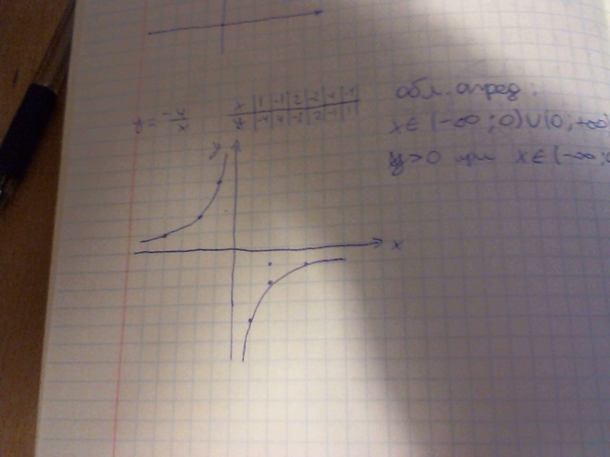 постройте график функции у=-4:х какова область определения функции? при каких значениях х функция принимает положительные значения?