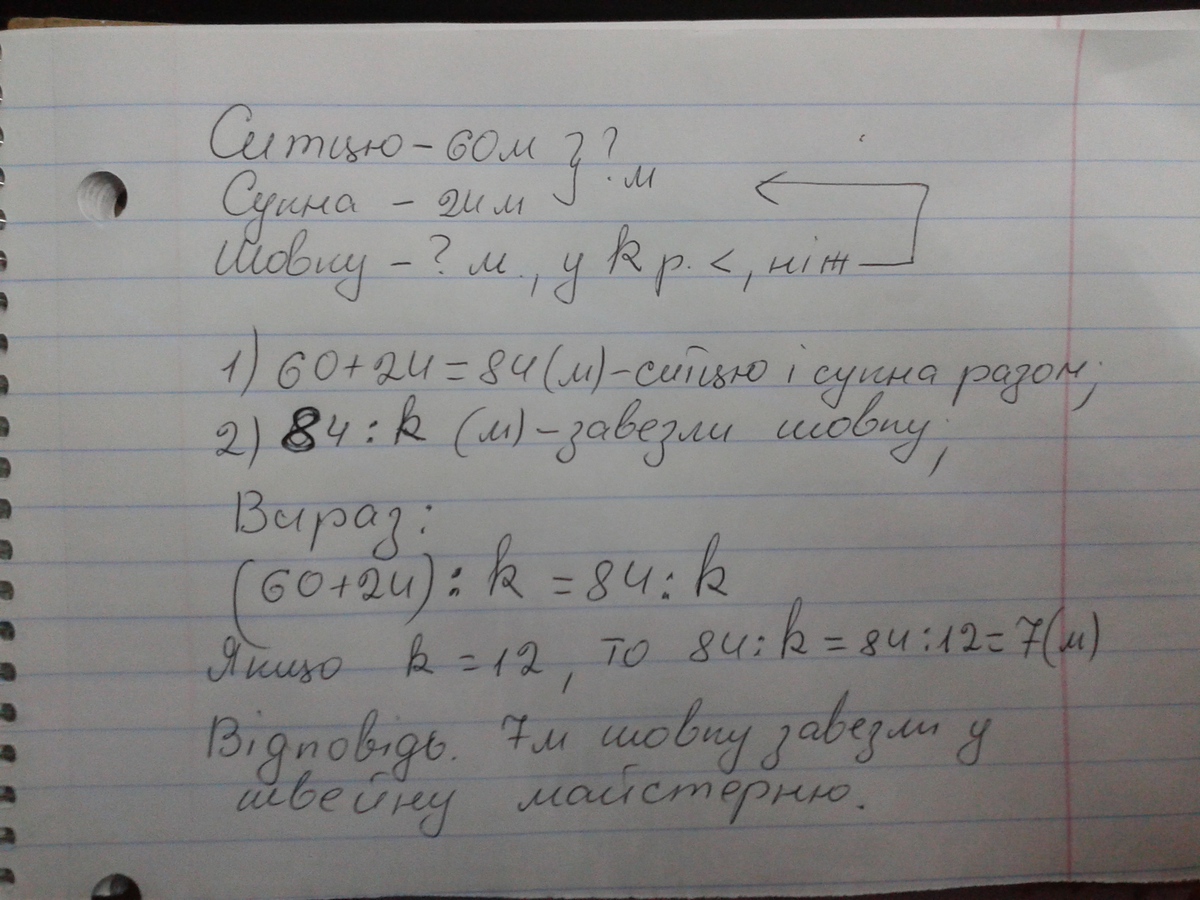 до швейной мастерской завезли 60 м ситцю,24 м сукна, а шовку - у к р м чем ситцю й сукна разом. Слилькы метрив шовку завезлы?