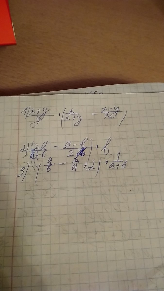 1. (x+y)/y × (x/(x+y) - (x-y)/x) = x(x+y) / y(x+y) - (x+y)(x-y) / xy =