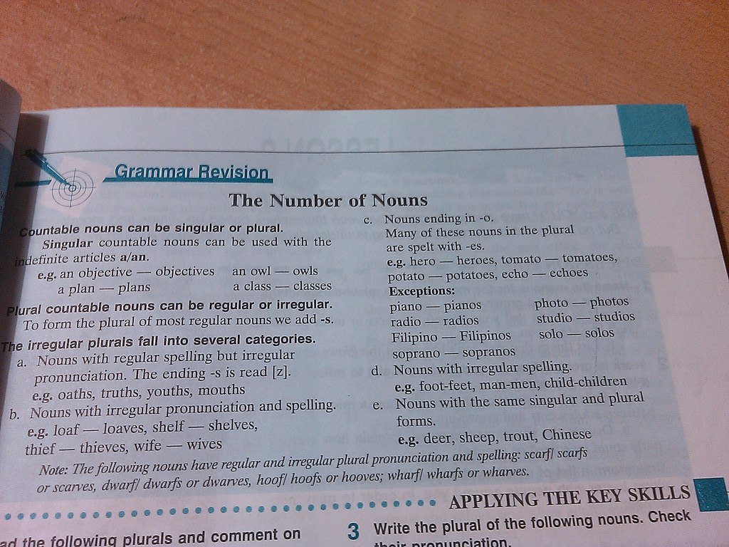 Which of the five categories (a,b,c,d,e) do the following irregular noun plurals fall into?