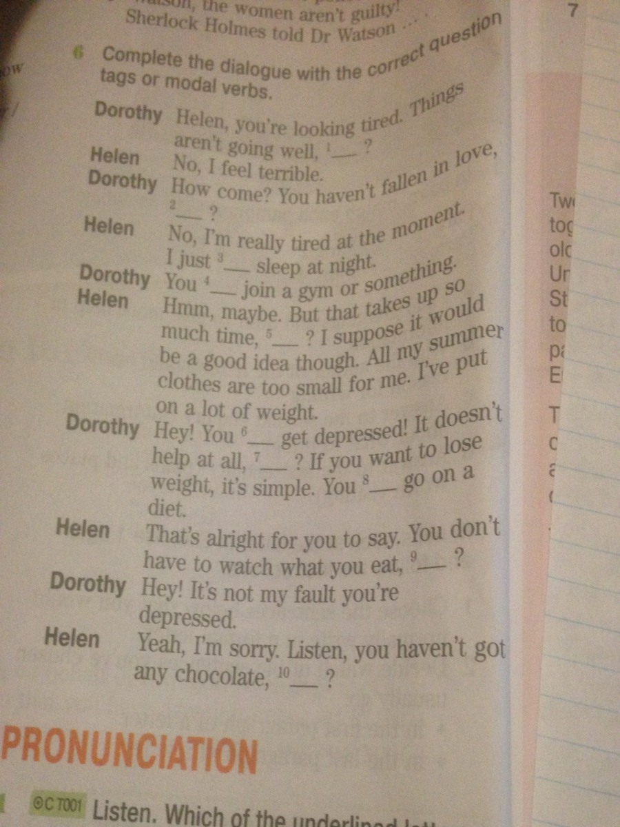 Помогите с "хвостиками" по английскому,9 класс.Complete the dialogue with the correct question tags or modal verbs