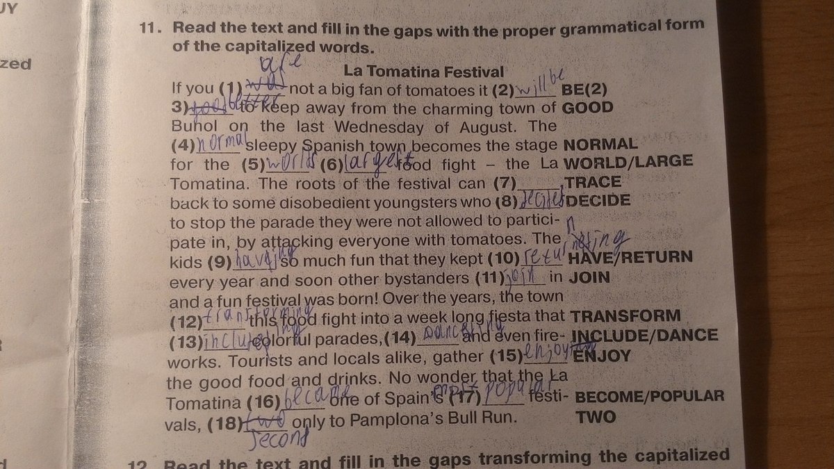 1- are, 2 - will be, 3 - better, 4 - normally, 5 - world`s, 6 - largest, 7 - be traced, 8 - decided, 9 - had had, 10 - returning, 11 - joined, 12 - transformed, 13 - including, 14 - dances, 15 - to enjoy, 16 - became, 17 - most popular, 18 - the second
