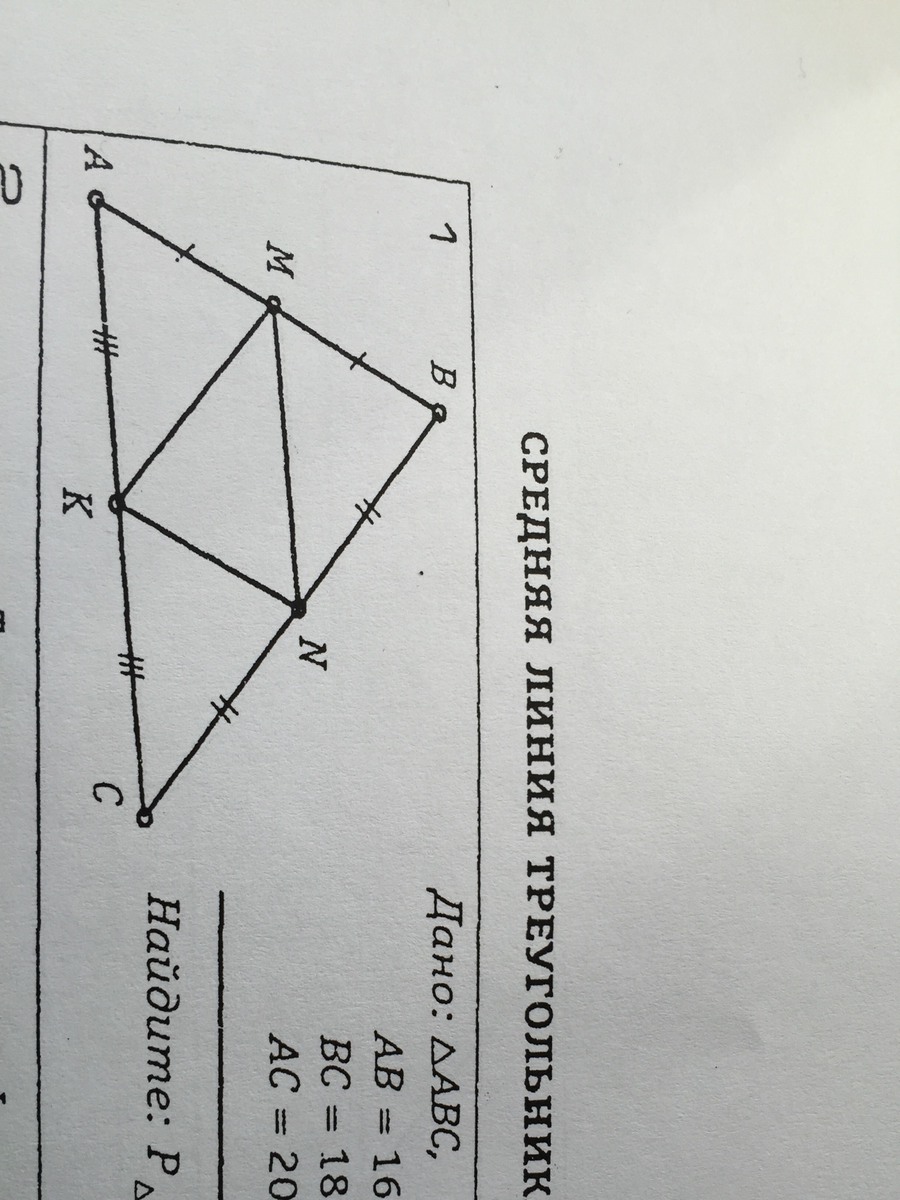 А стороны KMN являются средними линиями для треугольников, равны половине основания, вот осталось посчитать