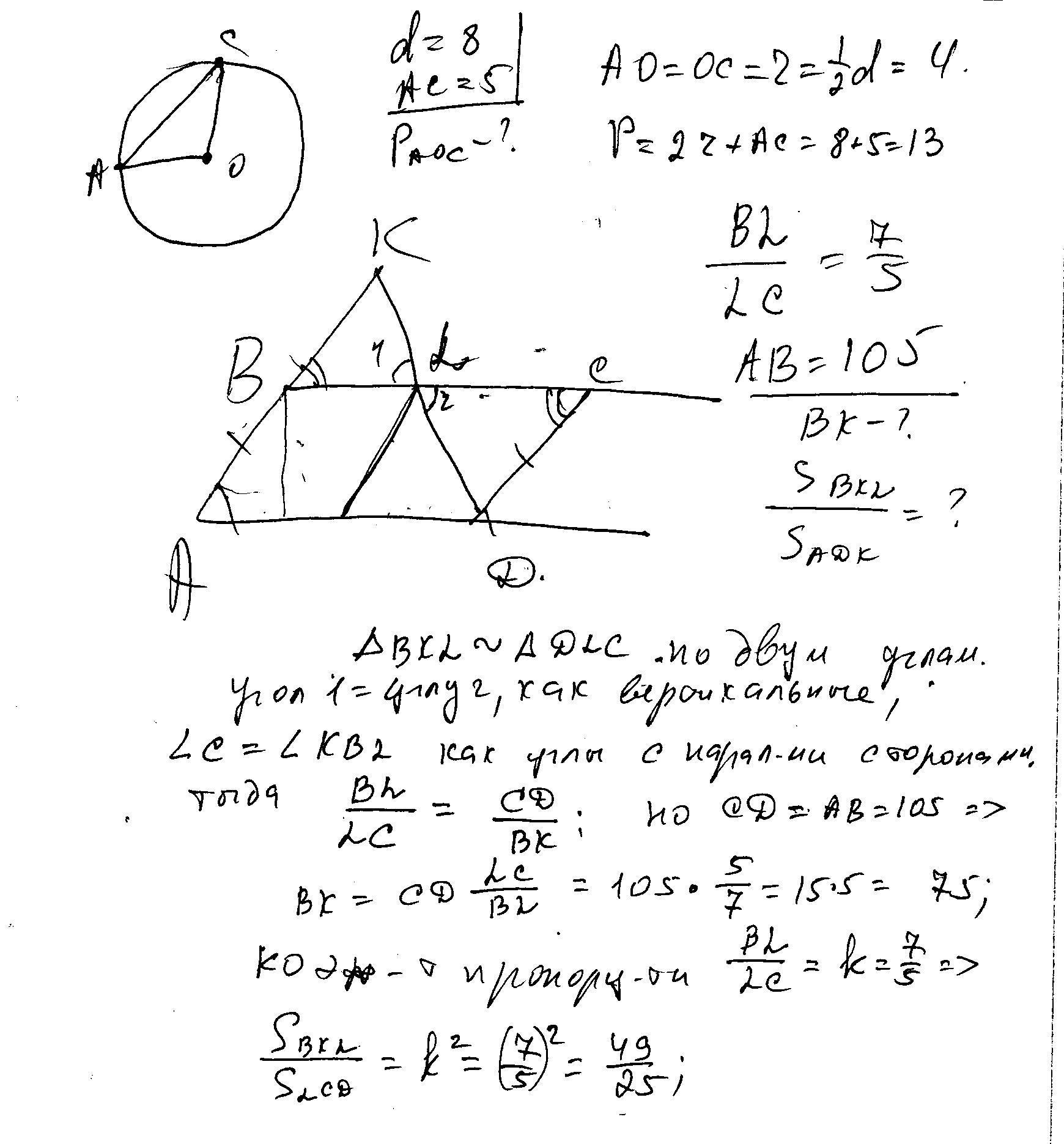 ABCD – параллелограмм (см. рисунок) BL:LC=7:5, AB=105 см. Найдите: а) BK; б) отношение площадей треугольников BKL и ADK.