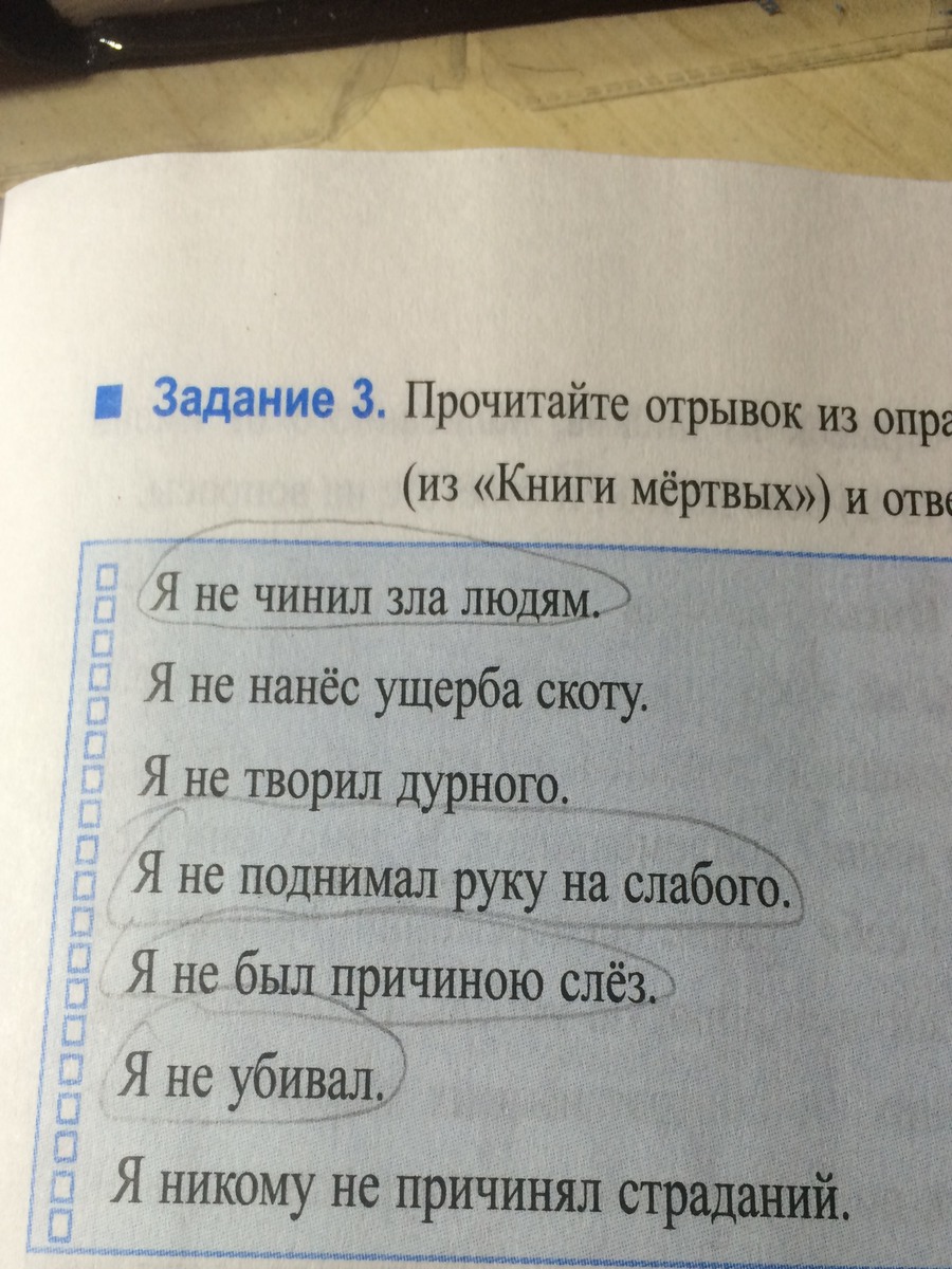 Обращаясь к Осирису ,в Зале Маати(богини истины ) умерший египтянин произносил "Исповедь отрицания" из "Книги смерти".