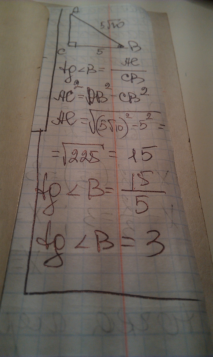 В треугольнике АВС угол С равен 90 градусов. ВС=5,АВ=5 корень из 10.Найдите tg В