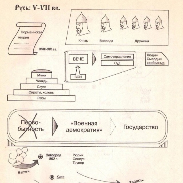 Данная картинка отражает социальное расслоение в древней руси и несколько теорий возникновения славянского государства.