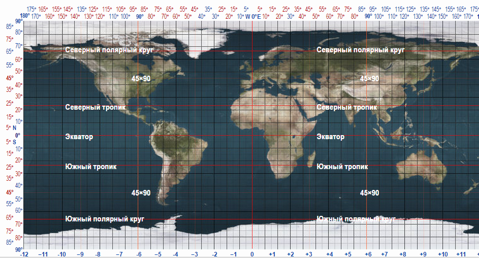 Установите соответствие между условными линиями на карте и значениями географической широты.