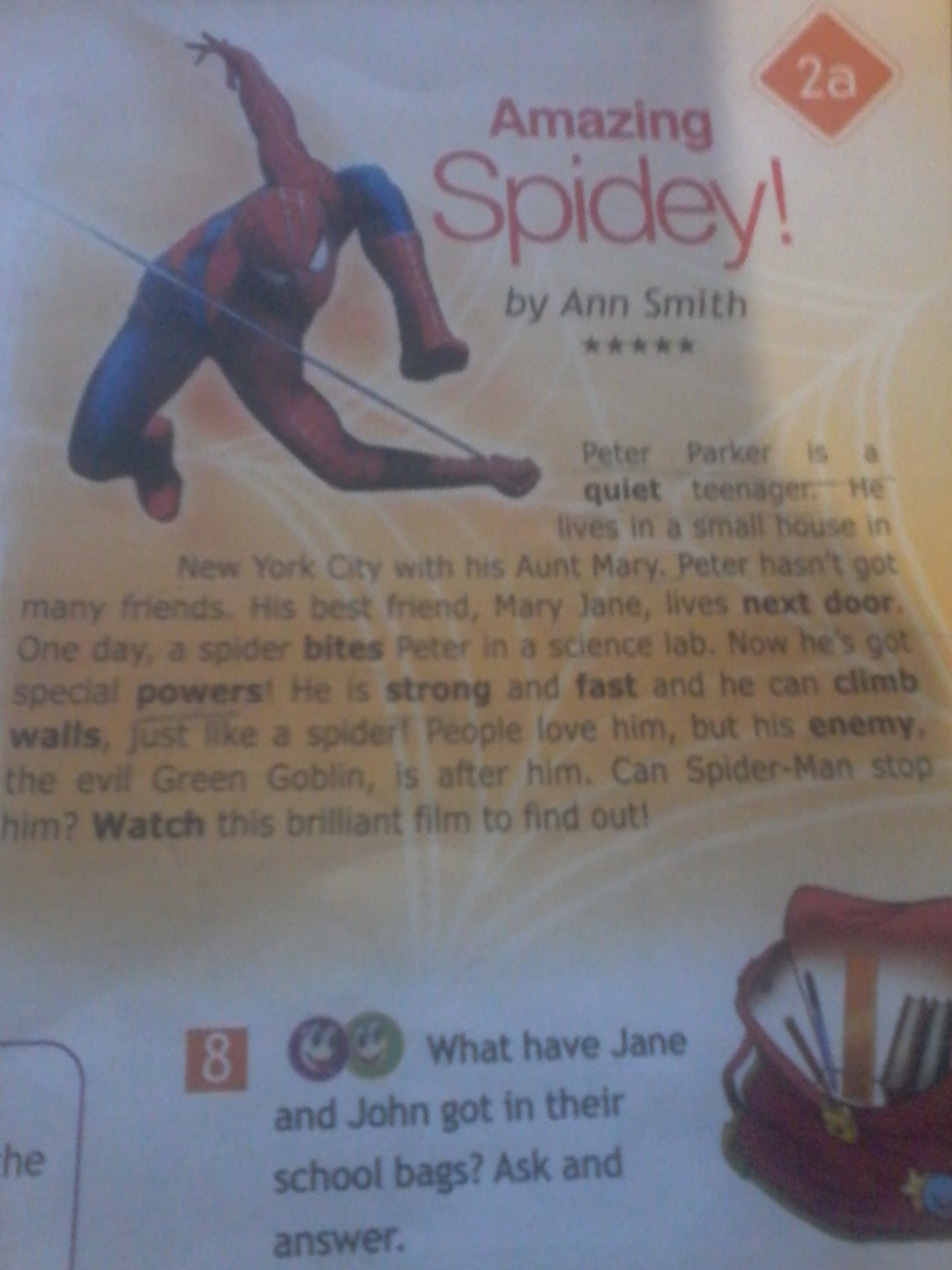 Питер Паркер тихий тинейджер. Он живет в маленьком доме Нью-Йорка со своей тетей Мэри. У Питера не много друзей. Его лучший друг, Мэри Джейн, живет по соседству. Однажды Питера укусил паук в научной лаборатории. Сейчас у него появились особенные силы! Он сильный и быстрый, он может взбираться по стенам, как паук! Люди дюбят его, но его враг, злой Зеленый Гоблин, за ним. Может ли Человек-паук остановить его? Посмотри этот бриллиантовый фильм, чтобы узнать это!