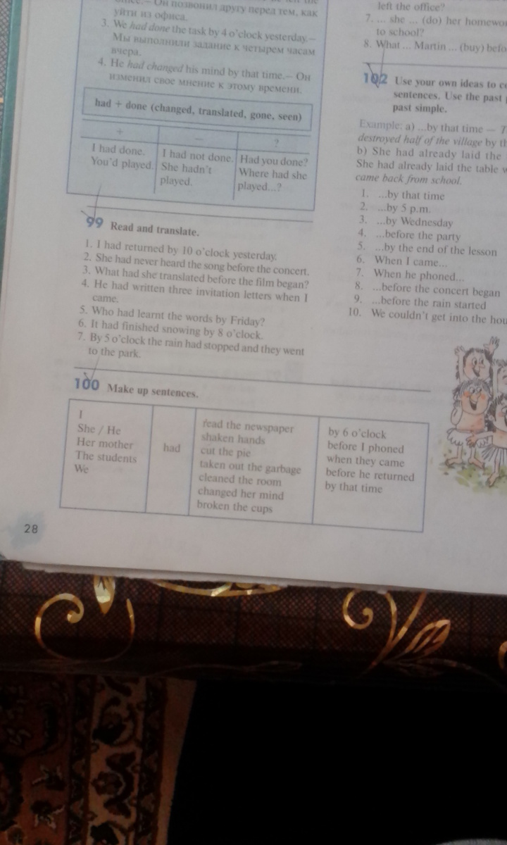 7)В 5 часов дождь прекратил идти и они пошли в парк.