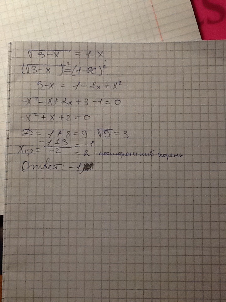 Если я правильно поняла ваш пример, то все верно! 2 посторонний корень так как число из под корня не может быть равно числу с минусом. А если о ходе решения, то возводим в квадрат обе стороны, что бы убрать корень, раскрывает скобку с права по формуле сокращенного умножения, потом переносим все в левую сторону и решаем обычное квадратное уравнение через дискриминант и, сделав проверку способом подставления видим, что 2 не подходит, я уже сказала почему