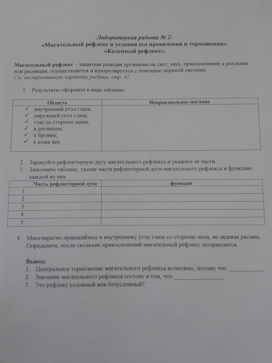 Лабораторная работа №2"Мигательный рефлекс и условия его проявления"