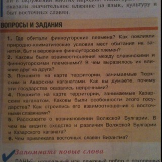4. Хазарский каганат. Восточными соседями славян были хазары. Основное ядро их царства размещалось между Черным и Каспийским морями. Однако границы государства менялись на протяжении VII — Х вв., то заходя за Кавказский хребет, то продвигаясь на запад. В пору расцвета Хазарского каганата, в IX в. в зависимость от него попали и некоторые славянские племена — поляне, северяне, вятичи. Об этом есть прямое указание в «Повести временных лет»