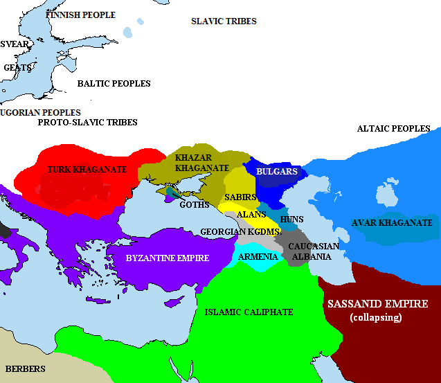 Славяне постоянно вели с Хазарским Каганатом кровопролитные войны и Каганат был разгромлен русским князем Святославом в 965 году, а окончательно его уничтожили чуть позднее хорезмийцы.