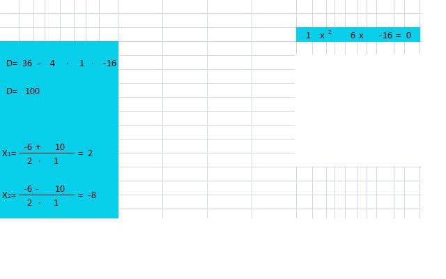 D=b^-4ac=36-4*(-16)=36+64=100=10^2