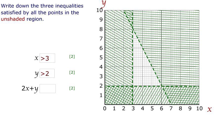 Напишите три неравенства, удовлетворящие все точки в незакрашенном регионе...