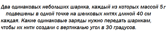 Посчитаем сначала силу кулоновского взаимодействия шариков, разведенных на угол 30 градусов: