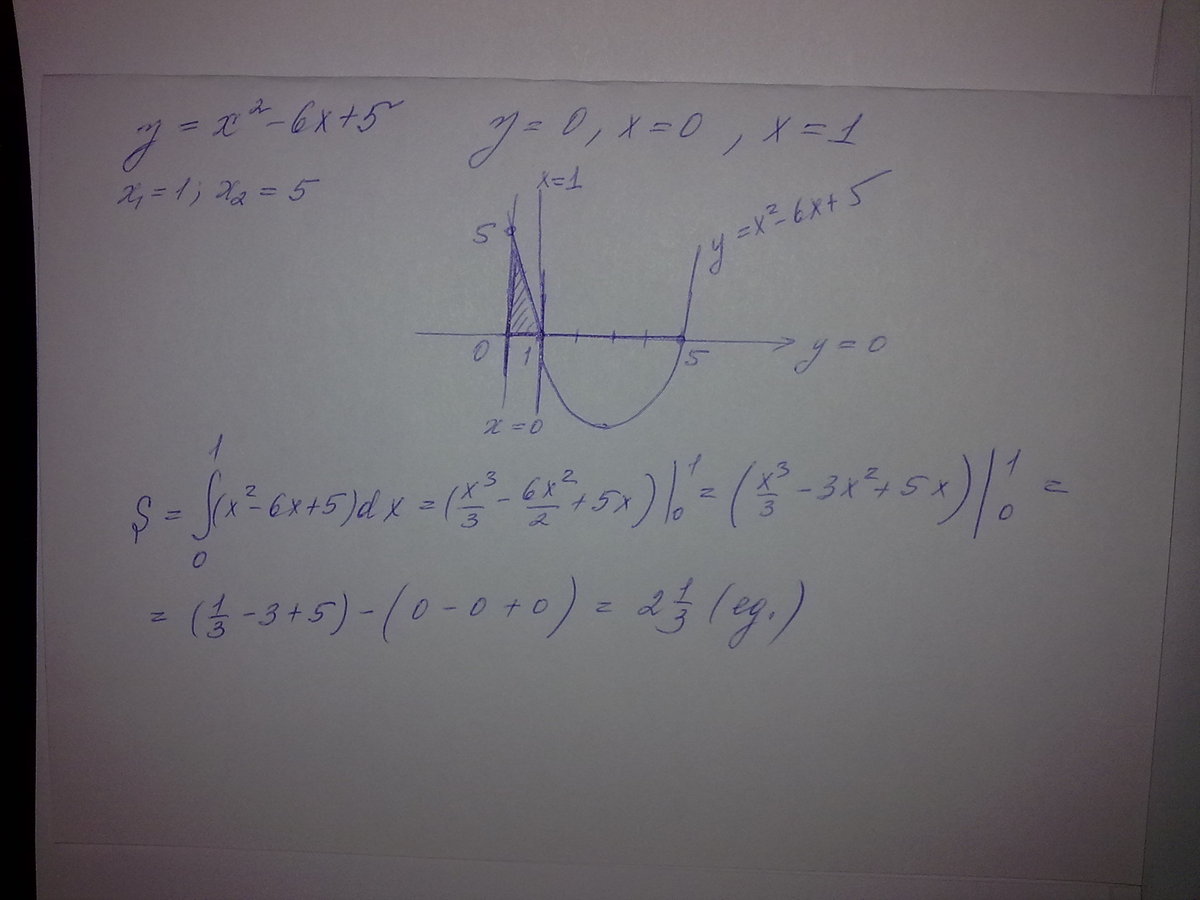 y= x^2 -6x+5, y=0, x=0, x=1