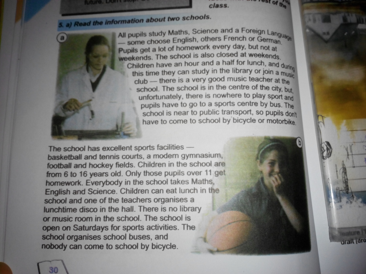 всі учні вивчають математику, науки та іноземні мови. деякі вибирають англійську, інші французьку або німецьку. учні отримують багато домашнього завдання кожен день, але не на вихідні. школа закрита на вихідні.