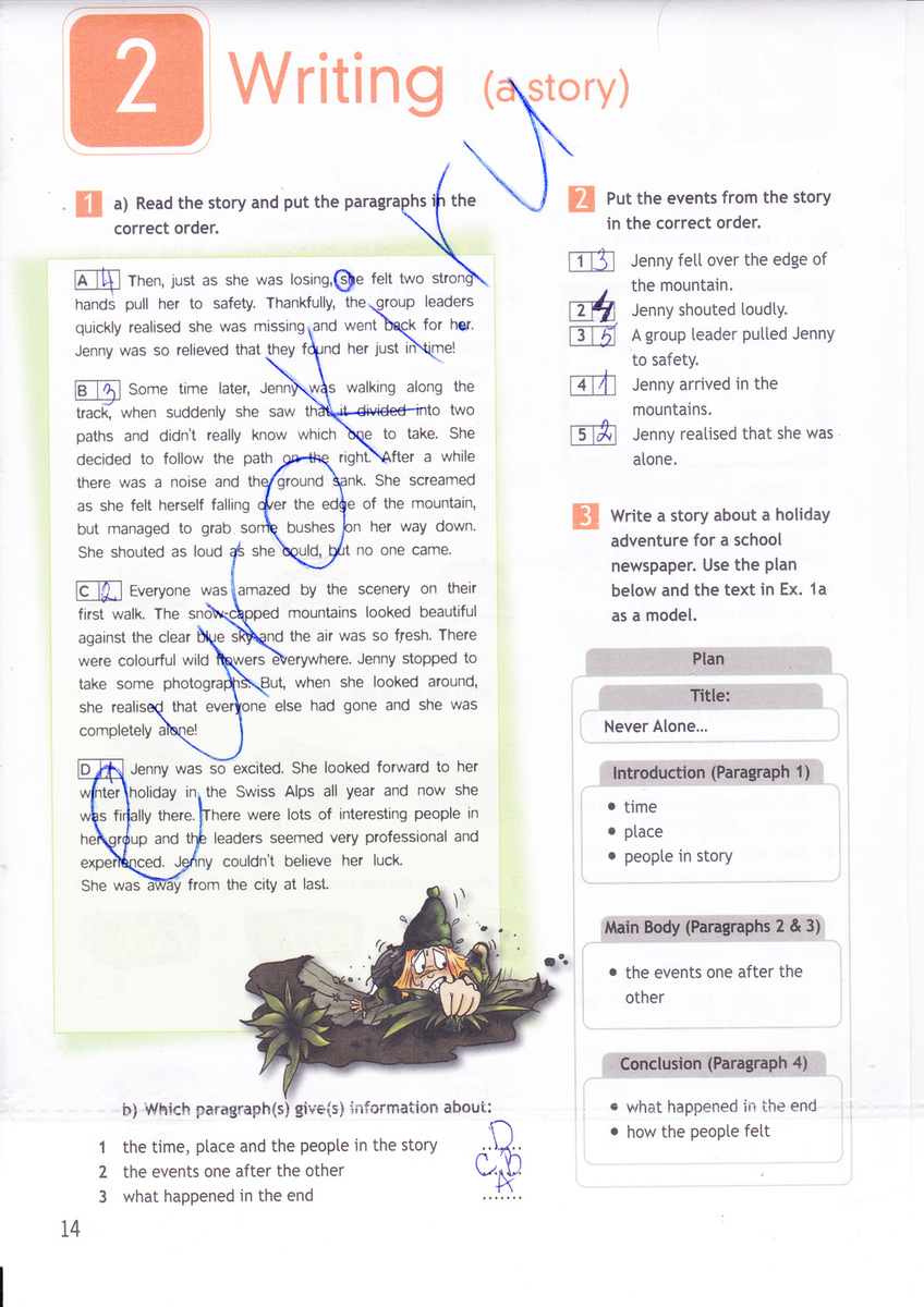 Все были поражены пейзажем первой прогулки. Заснеженные горы смотрелись красиво смотрелись на фоне чистого неба и воздух был свежим. Разноцветные цветы были повсюду. Дженни остановилась чтобы сделать фотографии. Но, когда она оглянулась, она поняла, что все остальные ушли и она осталась одна!