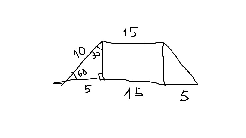 полуразность оснований=10/2=5 как катет против угла 30 градусов
