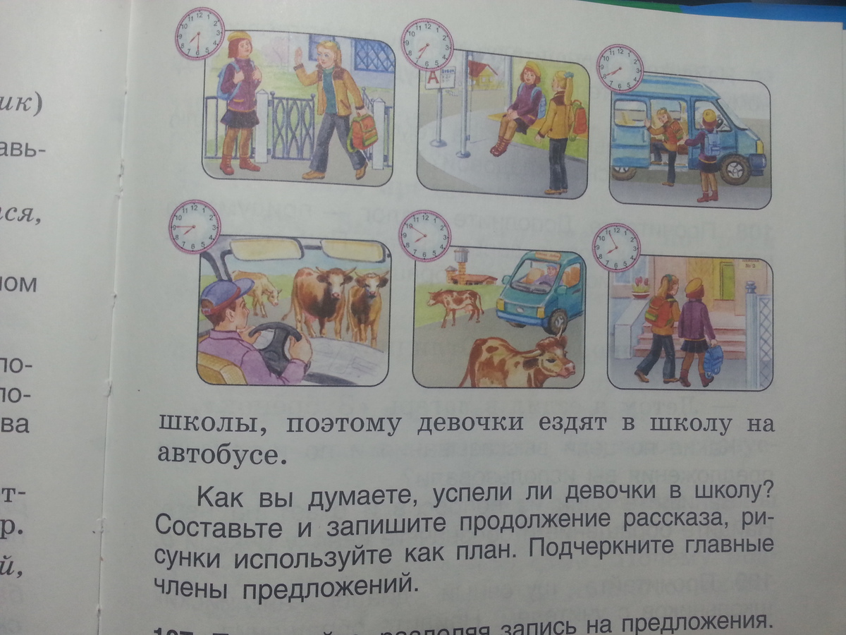 Когда я ехала в школу на школьники я увидела что на дороге стоят коровы водитель посмотрел на дорогу коровы не расходились потом он Нажал кнопку и издали звуки коровы испугались и разошлись и наконец-то мы приехали к остановке