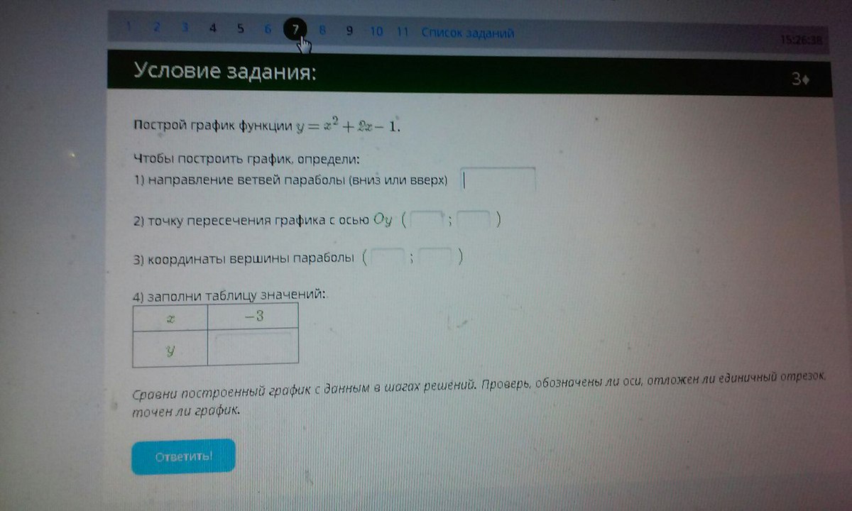 3 Ветви вверх ,с ОУ -1 , 2 , 7 , -2 , -1 , (-2,5 ; 0,5) И ПОСЛЕДНЕЕ 2