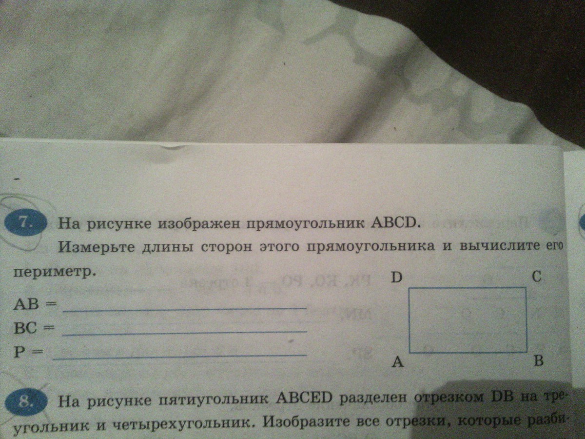 Измерьте длины сторон этого прямоугольника и вычислите его периметр.