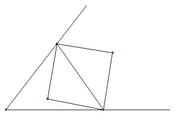 Постройте квадрат по данной диагонали так, чтобы две противоположные вершины этого квадрата лежали на разных сторонах данного острого угла.