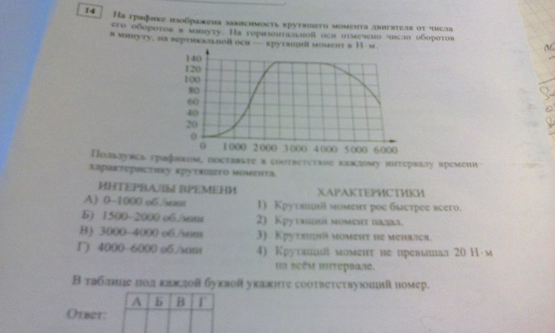 Пользуясь графиком, поставьте в соответствие каждому интервалу времени характеристику крутящего момента