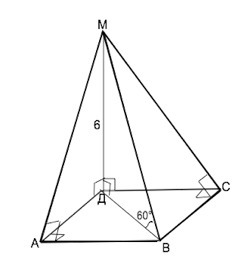 Из точки М проведён перпендикуляр МД,равный 6см,к плоскости квадрата АВСД.Наклонная МВ обрвзует с плоскостью квадрата угол 60 градусов. а)Докажите,что треугольники МАВ и МСВ прямоугольные. б)Найдите сторону квадрата. в)докажите,что треугольник АВД является проекцией треугольника МАВ на плоскость квадрата,и найдите его площадь.