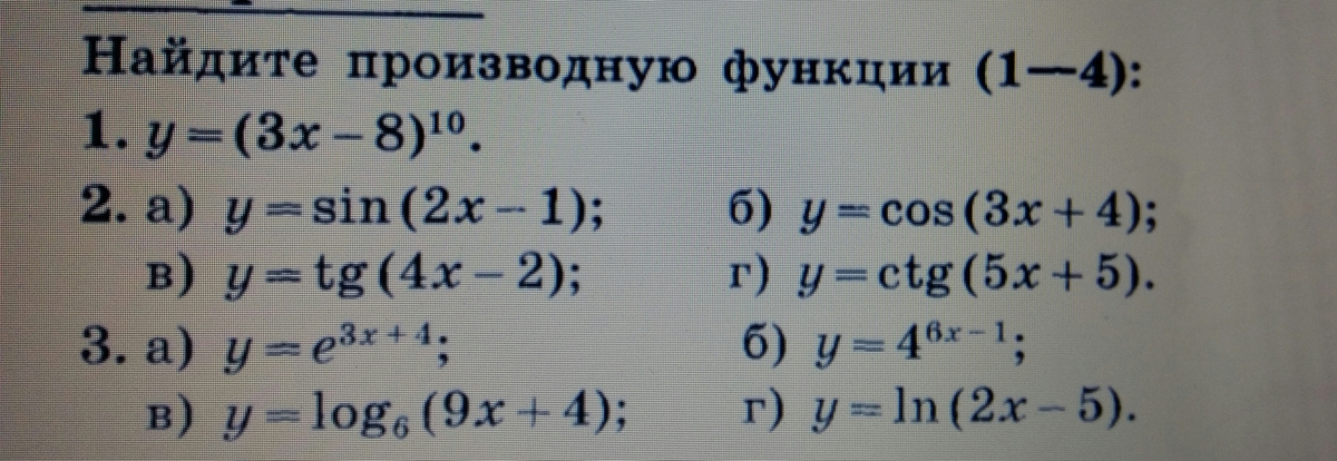 Все задания на вычисление производной сложной функции: