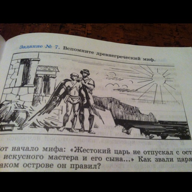 Вот начало мифа: "жестокий царь не отпускал с острова искусного мастера и его сына" как звали царя ? на каком острове он правил?