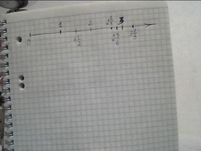 примите за единичный отрезок длину 6 клеток тетради и отметьте на кординатном луче точки с кординатами 3 1/3, 2 5/6,2 2/3,1 1/2