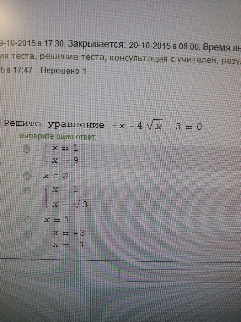 Ответ: нет корней (это ответ 2) нуль перечёркнутый