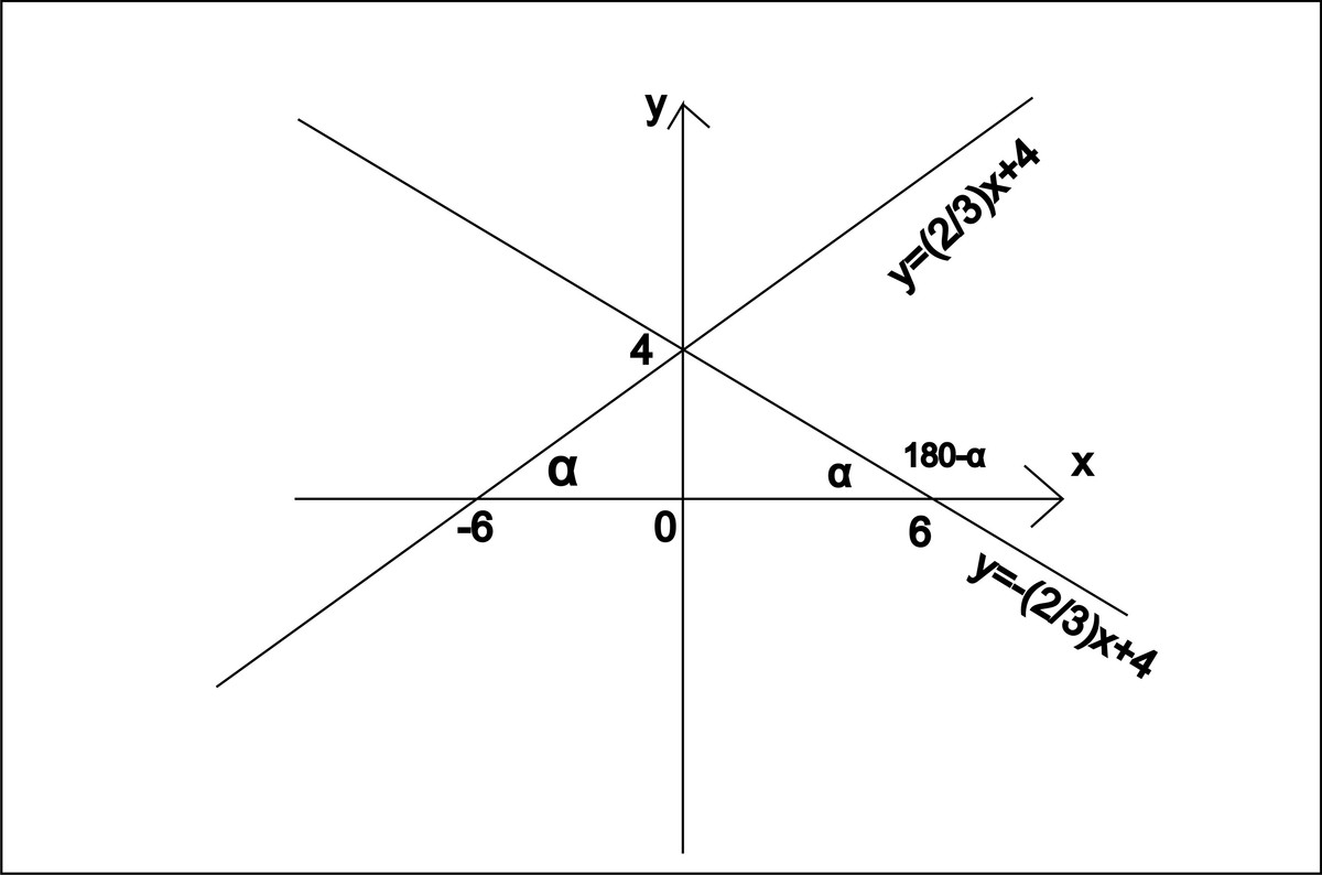 то есть у одной прямой угол между графиком и положительным направлением Ох равен α , то у другой 180-α.