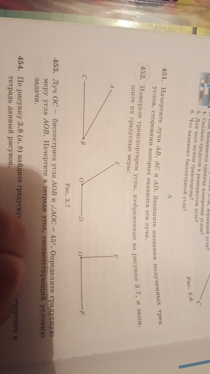 Измерьте транспортиром улы, изоброженные на рисунке 3.7, и запишите их градусные МЕРЫ ПОЖАЛУЙСТА ПОМОГИТЕ УРАВНЕНИЕ 452 ДАЮ 50 БАЛОВ