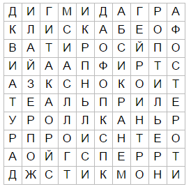 В приведенном филворде найдите названия всех устройств ввода/вывода информации. Прочитать слова вы сможете в любом направлении, кроме диагонального. Одна буква может быть использована только один раз.