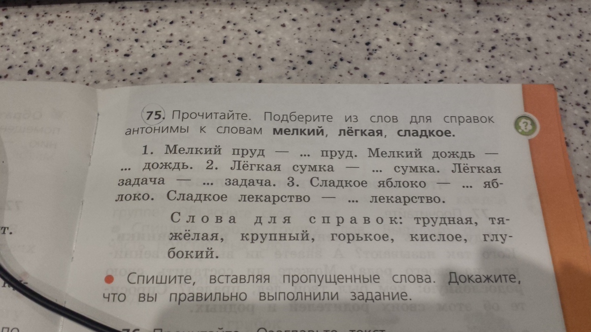1.Мелкий пруд-глубокий пруд.Мелкий дождь-крупный дождь. 2.легкая сумка-тяжелая сумка.Легкая задача-трудная задача.3.сладкое яблоко-кислое яблоко.Сладкое лекарство-горькое лекарство.