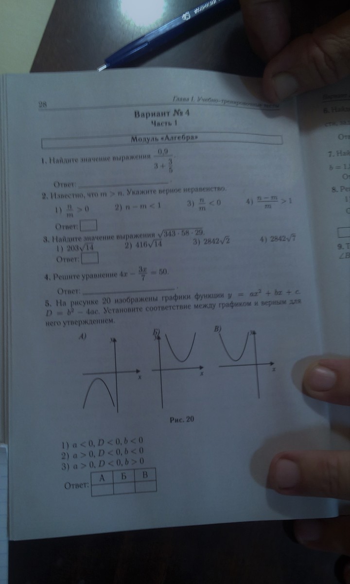 1. 0,9/(3+3/5)=в знаменатели складываем дроби ,но для этого надо найти их общий делитель,он равен 5 получаем: 0,9(15/5+3/5)=0,9(18/5)=