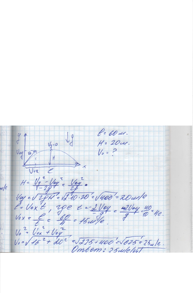 Футбольный мяч пролетел после удара расстояние L = 60 м. Какую начальную скорость сообщили мячу, если высота верхней точки его траектории H = 20 м?