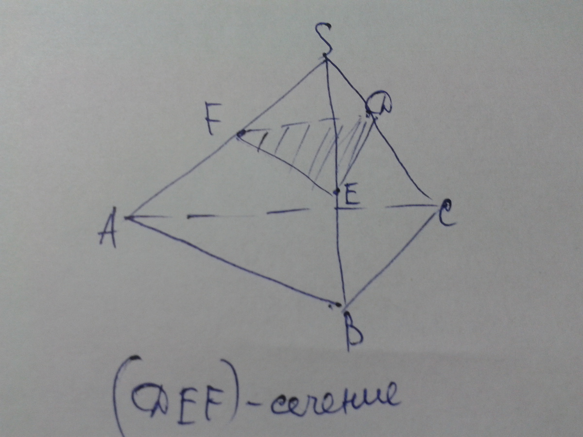 Постройте сечение треугольной пирамиды плоскостью проходящей через 3 точки.яки лежат на 3 боковых ребрах пирамиды