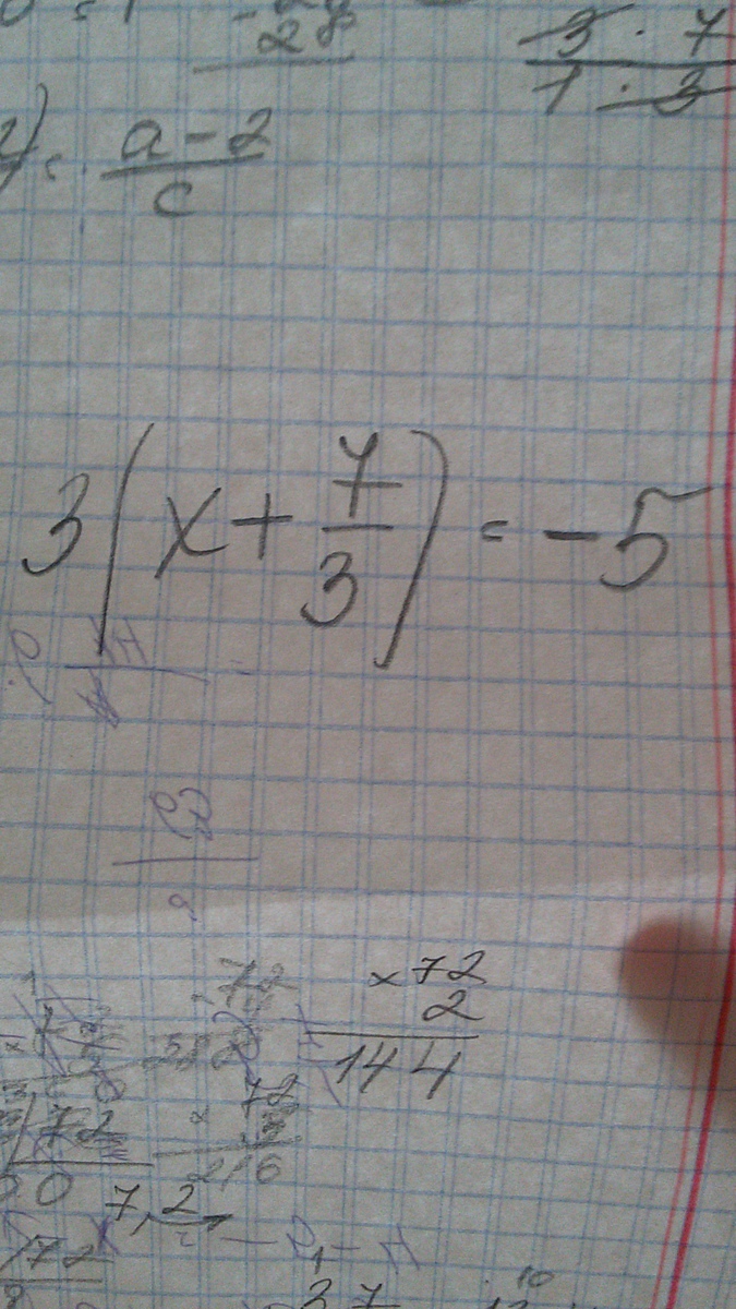 3(x+frac{7}{3})=-5 \\ 3x+7=-5 \\ 3x=-12 \\ x=-4