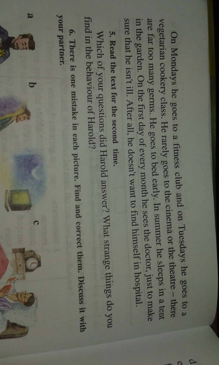 По понедельникам он идет к фитнес-клуб и по вторникам он идет к классу вегетарианской кулинарии. Он редко идет в кино или театр-есть слишком много микробов. он ложится спать рано. в летнее время он спит в палатке в саду. в первый день каждого месяца он видит врача, просто чтобы убедиться, что он не болен.В конце концов он не хочет оказаться в больнице.
