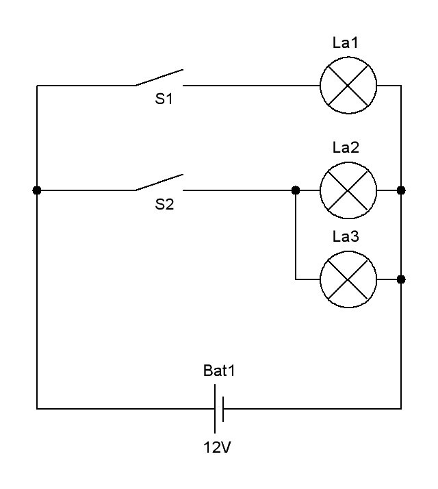 накресліть скему електричного кола,до складу якого входять батарея гальванічних елементів,два ключа,три лампочки.Можуть горіти одна,одночасово дві або три лампочки